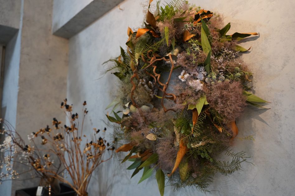 ドライフラワーのディスプレイ、